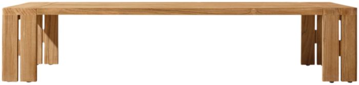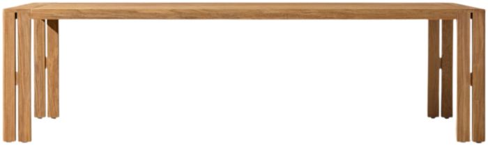 De tafel is verkrijgbaar in teakhout of aluminium, waardoor je kunt kiezen tussen een warme, natuurlijke sfeer of een strakke, moderne look.