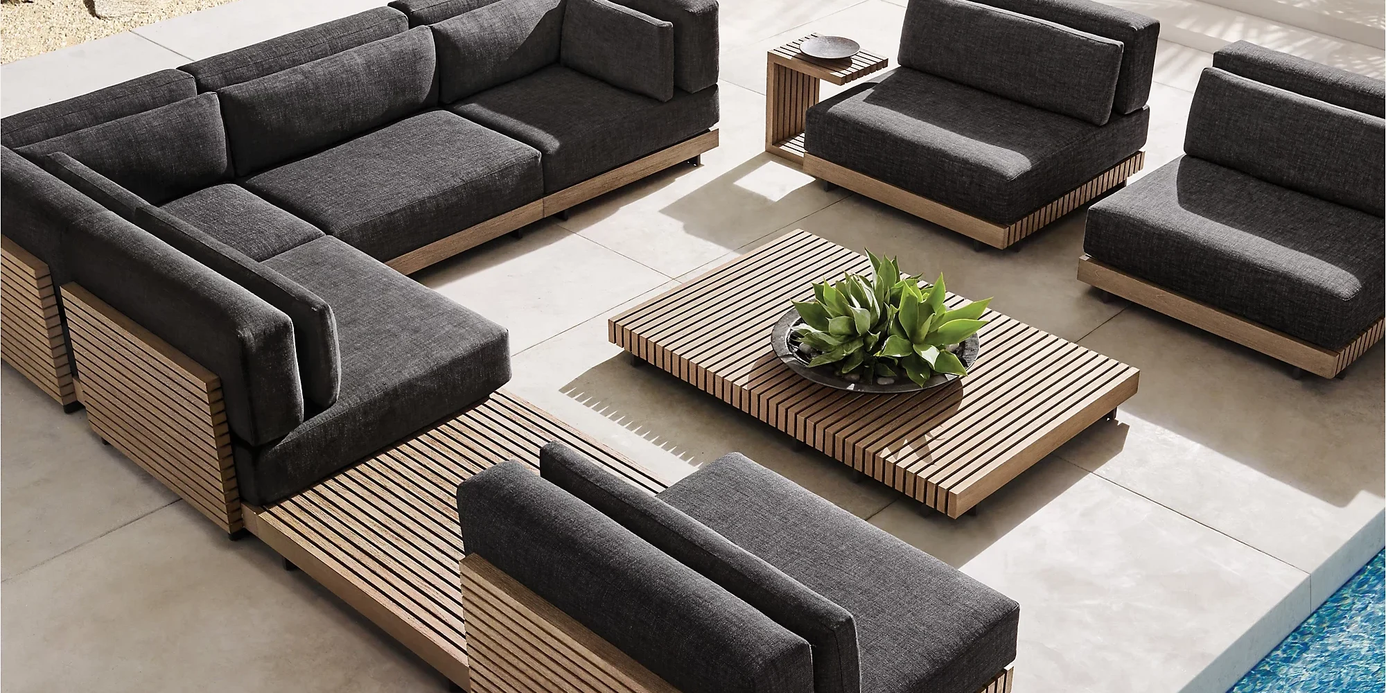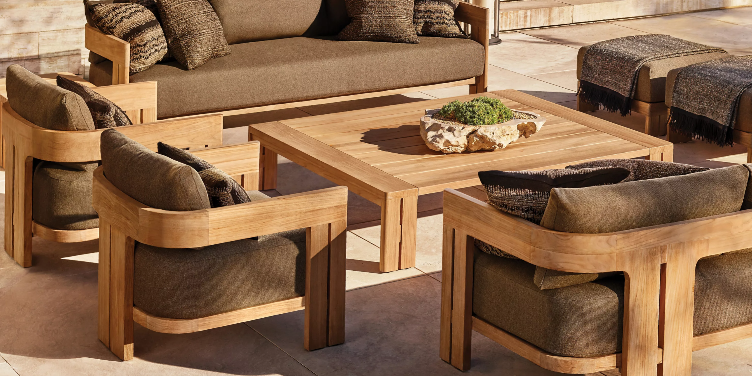 Onze loungesets worden gemaakt van duurzame materialen die bestand zijn tegen weer en wind, zonder in te leveren op uitstraling of comfort. Van stevig aluminium frames en teakhouten details tot weerbestendige kussens – elk detail is gekozen met oog voor kwaliteit, duurzaamheid en design.